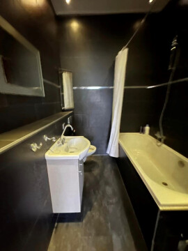 De badkamer is een waar paradijsje op zichzelf. Voorzien van een heerlijk ligbad, een toilet en een wastafel, kun je hier in alle rust ontspannen en jezelf verwennen na een lange dag. Met deze luxe voorzieningen hoef je niet langer naar de spa, maar creëer je gewoon je eigen wellnesservaring.