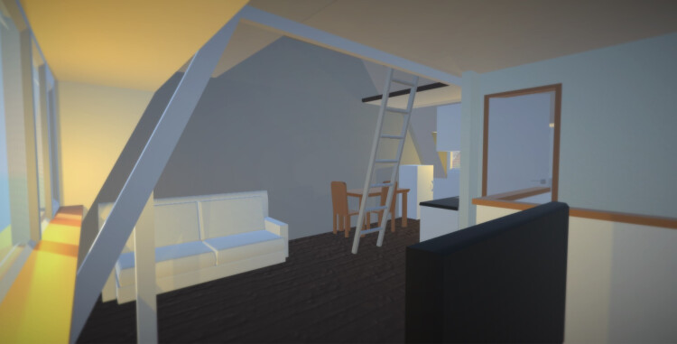 De woning is krakend vers nieuw, in een schattig oud en goed geïsoleerd rijtjeshuis van 1935. De studio heeft een aantal unieke eigenschappen: